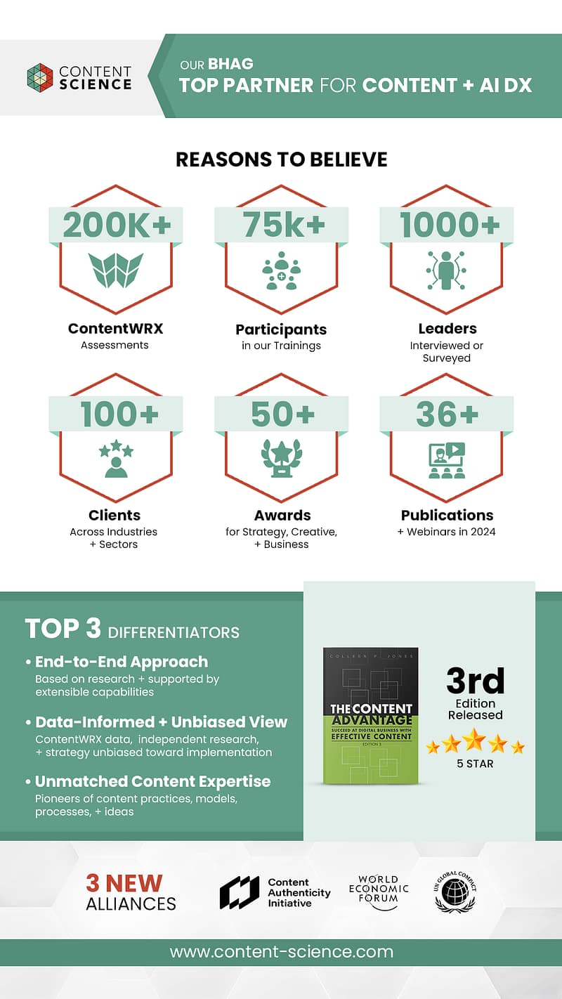 - Releasing the third edition of The Content Advantage, which expands its discussion of AI and is earning top ratings and reviews.